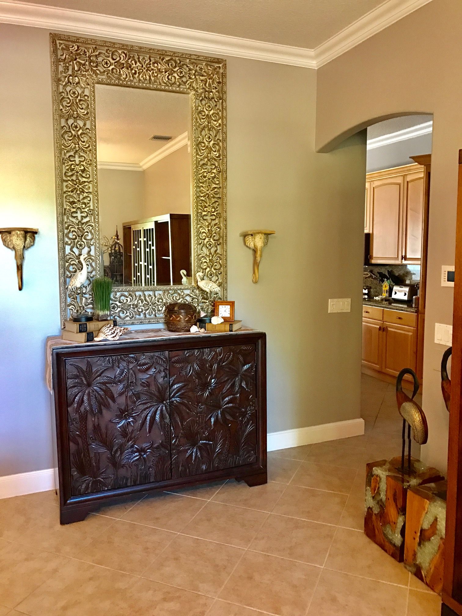 The clients, owners of a downtown art gallery, came to CJ for her expertise after having visited her home on The Woman’s Club of Stuart’s Holiday Tour of Homes. They also carried her artworks in their gallery and trusted her eye for aesthetics.